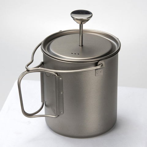 Pembuat kopi berkemah Titanium pegangan dapat dilipat, pembuat kopi berkemah dengan tutup, mesin Espresso dan pembuat tekanan teh 650ml