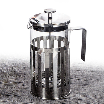 גבוהה borosilicate זכוכית צרפתית לחץ נירוסטה פסים אנכיים מכונות תה הקש מכונת קפה לשימוש עסקי