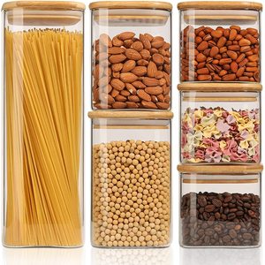 Frascos De Vidro De Bambu Grande Pacote De Recipiente De Despensa
