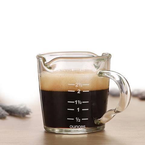 Copo de medição de vidro com bico duplo, copo de café expresso, alça resistente ao calor, caneca transparente para mistura de frascos e frascos, calibre de onça