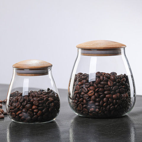 900ml Mushroom Shape Bonito Hermético Frasco De Vidro Com Tampa De Bambu Para Recipiente De Armazenamento De Alimentos para Coffee Bean